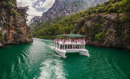 Manavgat Boat Tour, or Manavgat Tekne Turu in Turkish, is a popular and enjoyable activity for tourists visiting the Manavgat region in Turkey. This boat tour takes you on a scenic journey along the stunning Manavgat River, offering breathtaking views of nature and a chance to explore the area's cultural and historical attractions. The Manavgat River, located in the Antalya province of Turkey, is a picturesque waterway that flows into the Mediterranean Sea. The boat tour allows you to cruise along the river, surrounded by lush greenery and beautiful landscapes. The calm and peaceful waters of the river create a serene atmosphere, perfect for relaxation and tranquility. One of the highlights of the Manavgat Boat Tour is the visit to the famous Manavgat Waterfall. As the boat approaches the waterfall, you can witness the majestic cascades of water pouring down from a height, creating a mesmerizing sight. You have the opportunity to get off the boat and explore the surrounding area, take stunning photos, and even swim in the refreshing waters near the waterfall. During the boat tour, you'll also pass by quaint riverside villages, where you can catch a glimpse of the local lifestyle and traditions. These villages offer a glimpse into the authentic Turkish culture and provide an opportunity to interact with the friendly locals. You can visit small shops selling traditional crafts, taste delicious local cuisine, or simply enjoy a leisurely stroll along the riverbanks. As you continue your journey, the boat tour takes you to the mouth of the river, where it meets the Mediterranean Sea. Here, you can witness the striking contrast between the calm river waters and the vast expanse of the sea. The boat may anchor at a picturesque beach, allowing you to swim, sunbathe, or simply relax on the sandy shores. Throughout the tour, knowledgeable guides provide interesting and informative commentary about the history, geography, and wildlife of the region. They will share fascinating facts and stories about the Manavgat River, its importance to the local community, and the diverse ecosystem that thrives in its waters. The Manavgat Boat Tour typically includes onboard amenities such as comfortable seating, sun decks, and onboard dining options. You can enjoy a delicious lunch or snacks while admiring the scenic views and feeling the gentle breeze. Whether you're traveling solo, with a partner, or as a family, the Manavgat Boat Tour offers something for everyone. It's a perfect opportunity to relax, unwind, and connect with nature. The tour is suitable for all age groups and can be customized to meet your preferences and interests. In conclusion, the Manavgat Boat Tour is a delightful experience that allows you to immerse yourself in the beauty of the Manavgat River and its surroundings. It's a chance to witness the breathtaking Manavgat Waterfall, explore charming